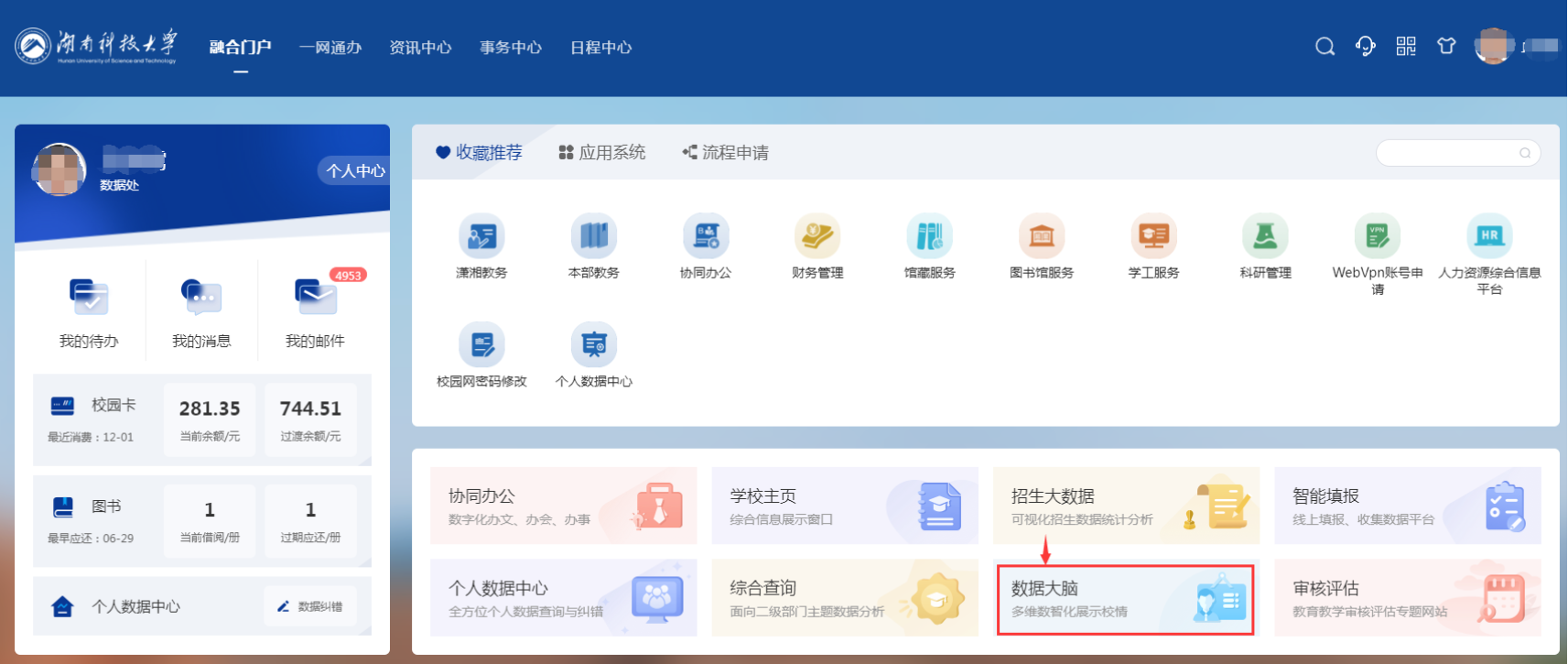 1)PC端访问。登录“学校主页->融合门户”即可查看数据。