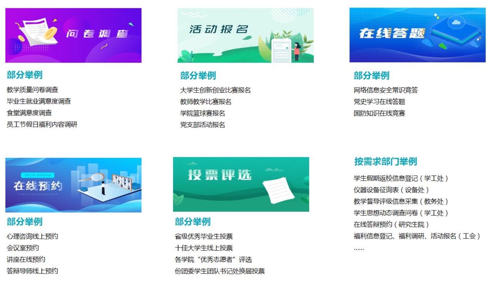 1)满足在线预约、问卷调查、随机出题、投票评选等多种业务。